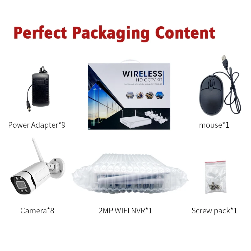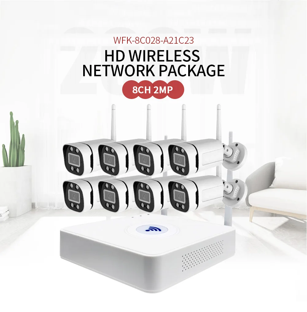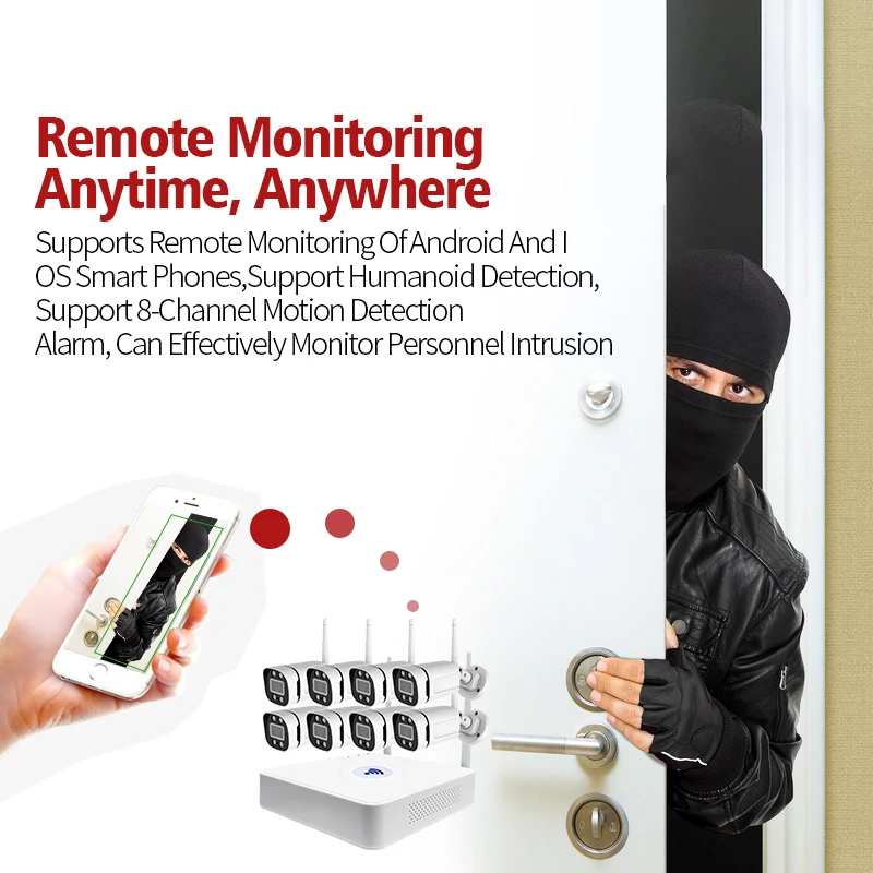 * Caméra haute définition sans fil, prend en charge l'alarme de détection de mouvement à 8 canaux, qui peut surveiller efficacement l'intrusion du personnel