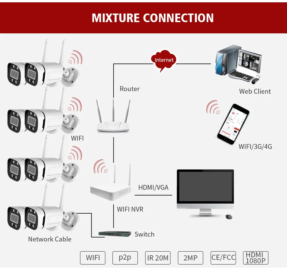 * Les fonctionnalités faciles à utiliser permettent à ce produit d'être largement utilisé dans des environnements de surveillance tels que les maisons, les villas, les supermarchés, les bureaux haut de gamme et les petites usines.