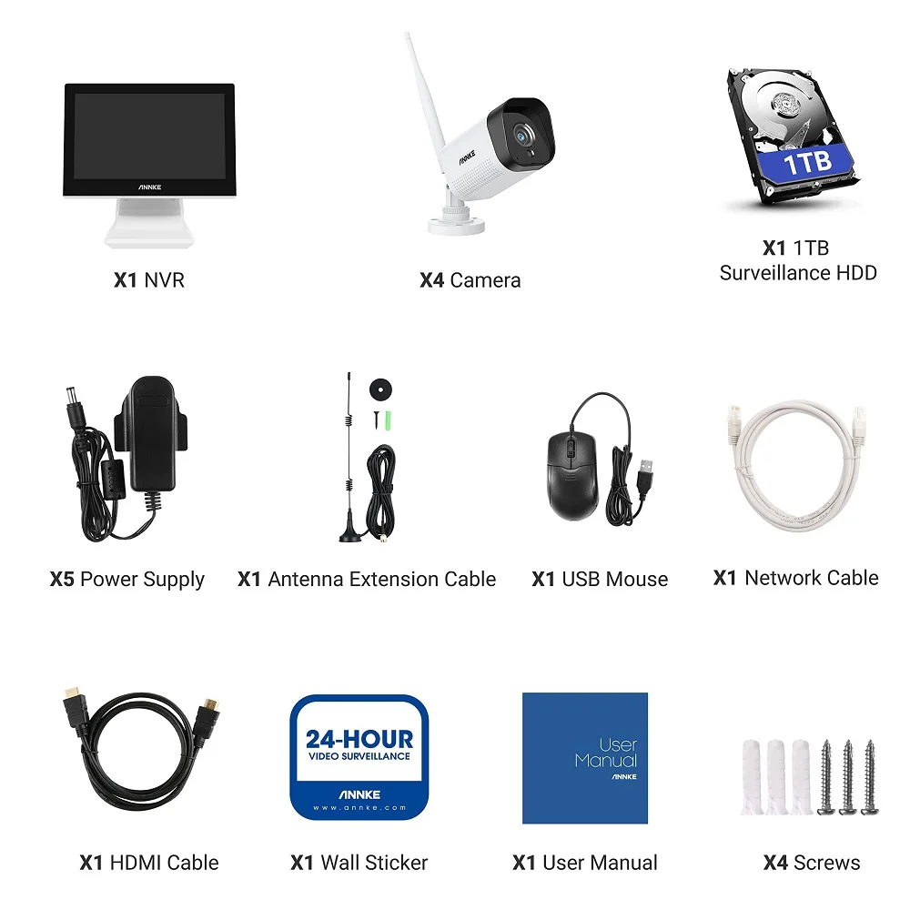 Système de vidéosurveillance ANNKE WTL300 3MP Super HD 4 canaux 4 caméras