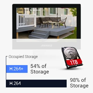 * Profitez d'un flux en direct beaucoup plus fluide sans latence et d'un temps d'enregistrement plus long que les systèmes H.264 normaux. S