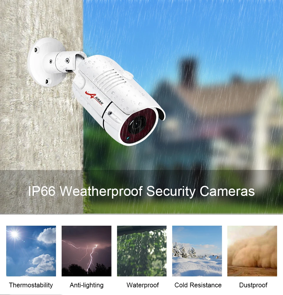 Bien que chaque appareil photo soit adapté à une utilisation intérieure et extérieure, ils ont été spécialement conçus pour résister aux durs impacts de la nature. Ils ont chacun un indice de protection IP66, ce qui signifie qu'ils peuvent tolérer des températures extrêmes aux deux extrémités du spectre. Ils sont chacun lotés dans des extérieurs entièrement métalliques pour une protection supplémentaire.