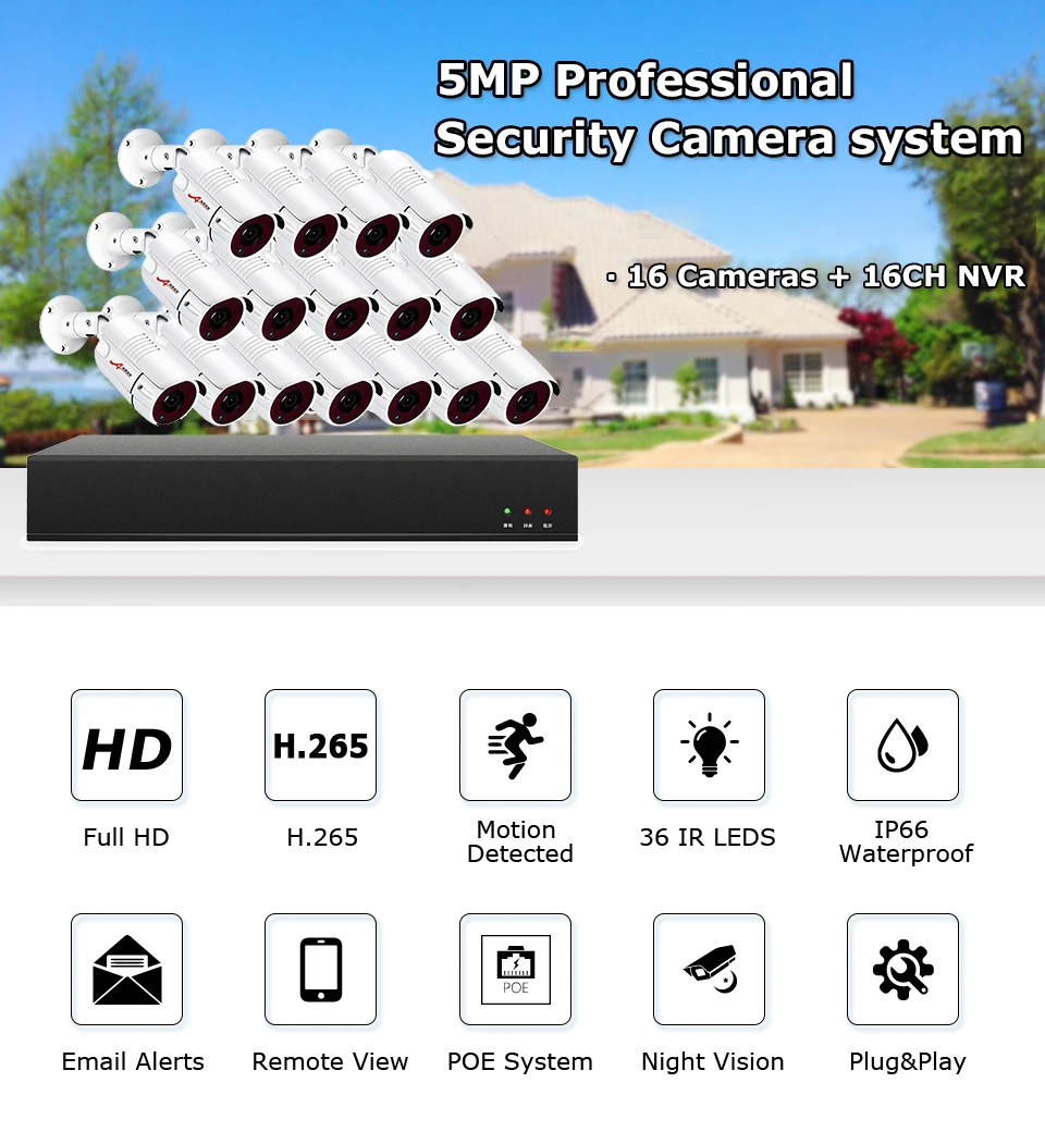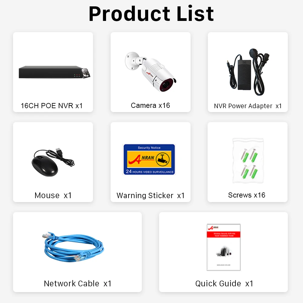 Anran vente à bas prix 5mp 16ch plug and play POE NVR Kits 16CH Home Video cctv Surveillance Cameras System