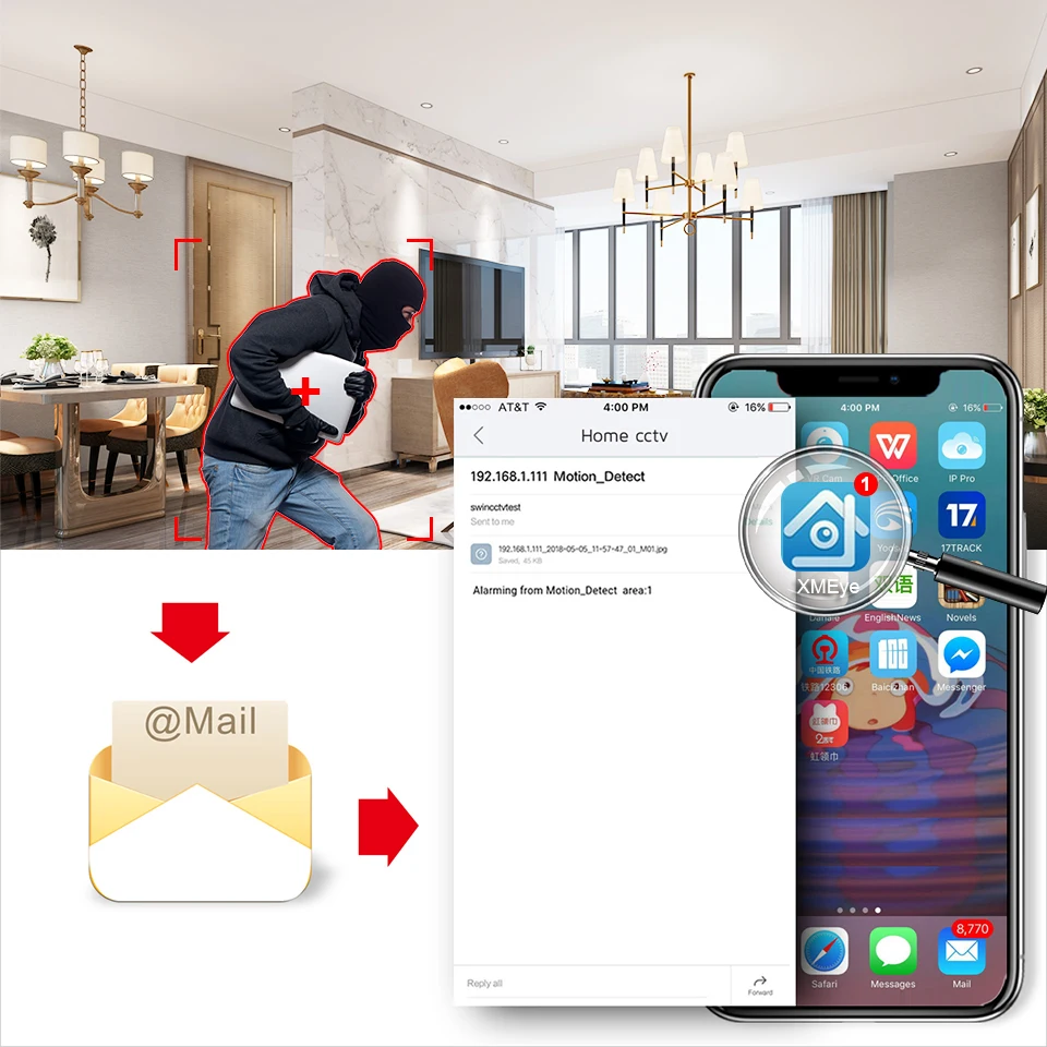 Vous pouvez activer les alertes de détection de mouvement, lorsque l'objet se déplace, la caméra enverra la situation anormale à votre e-mail.