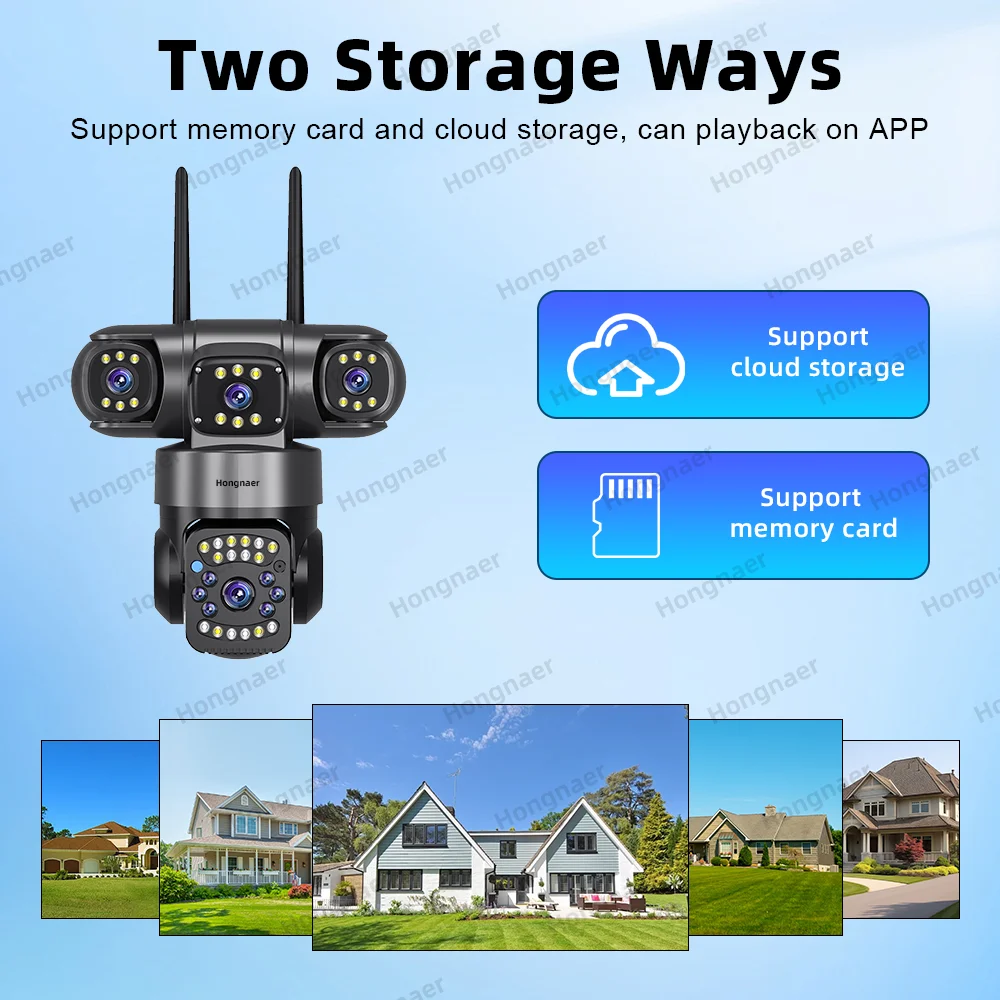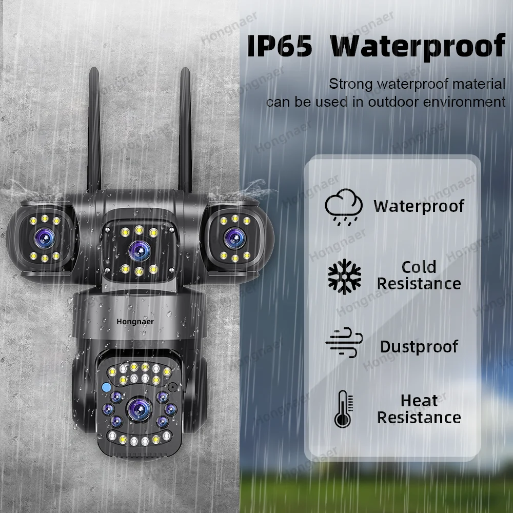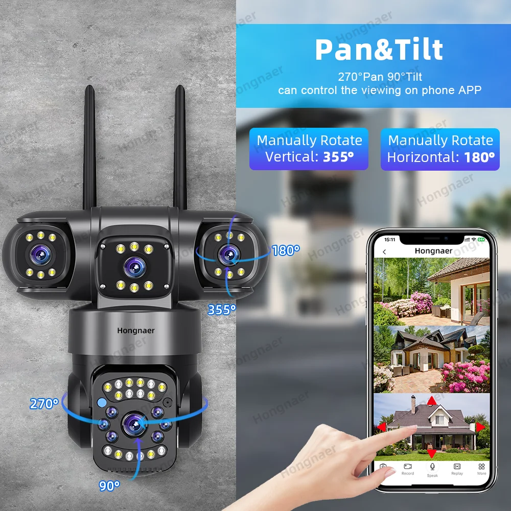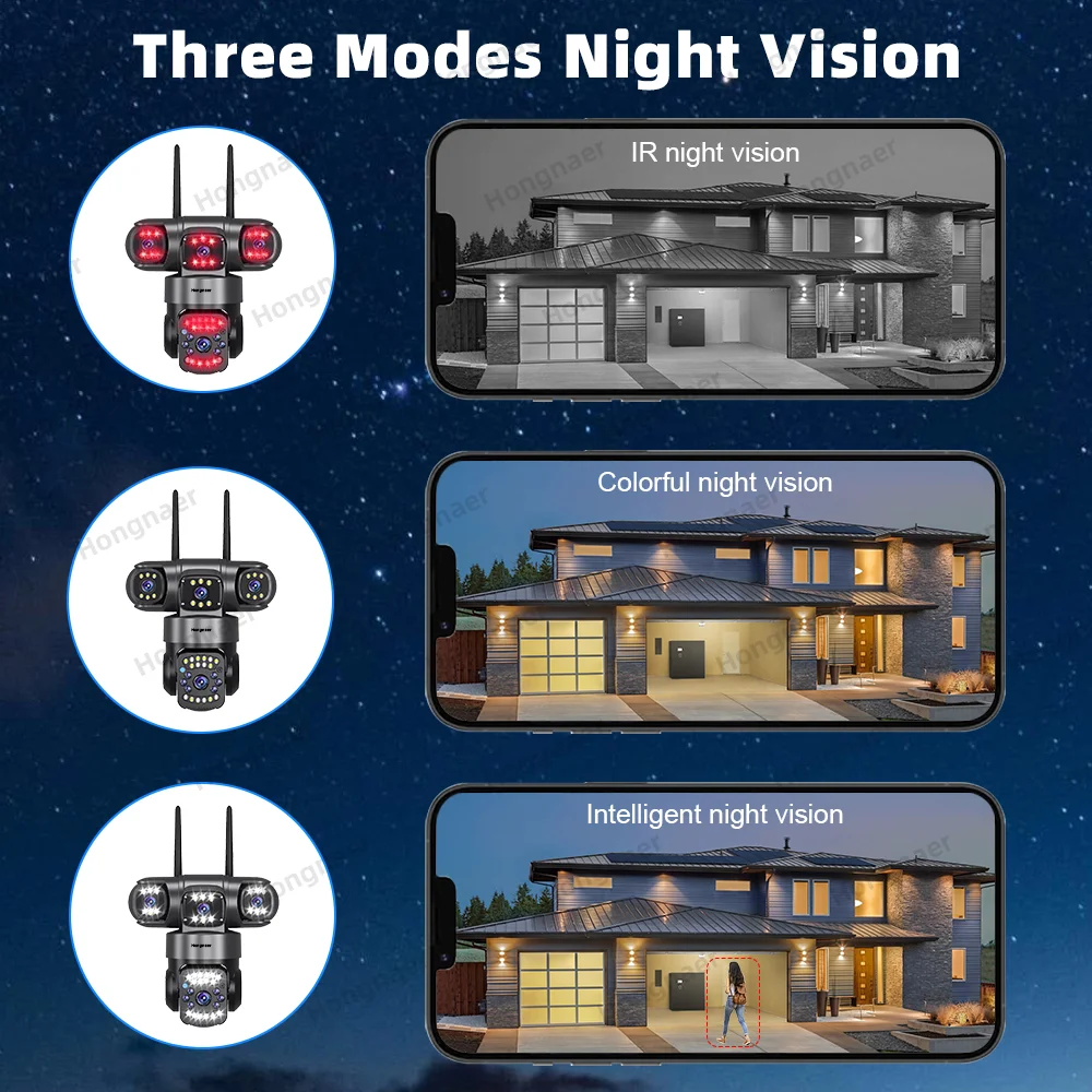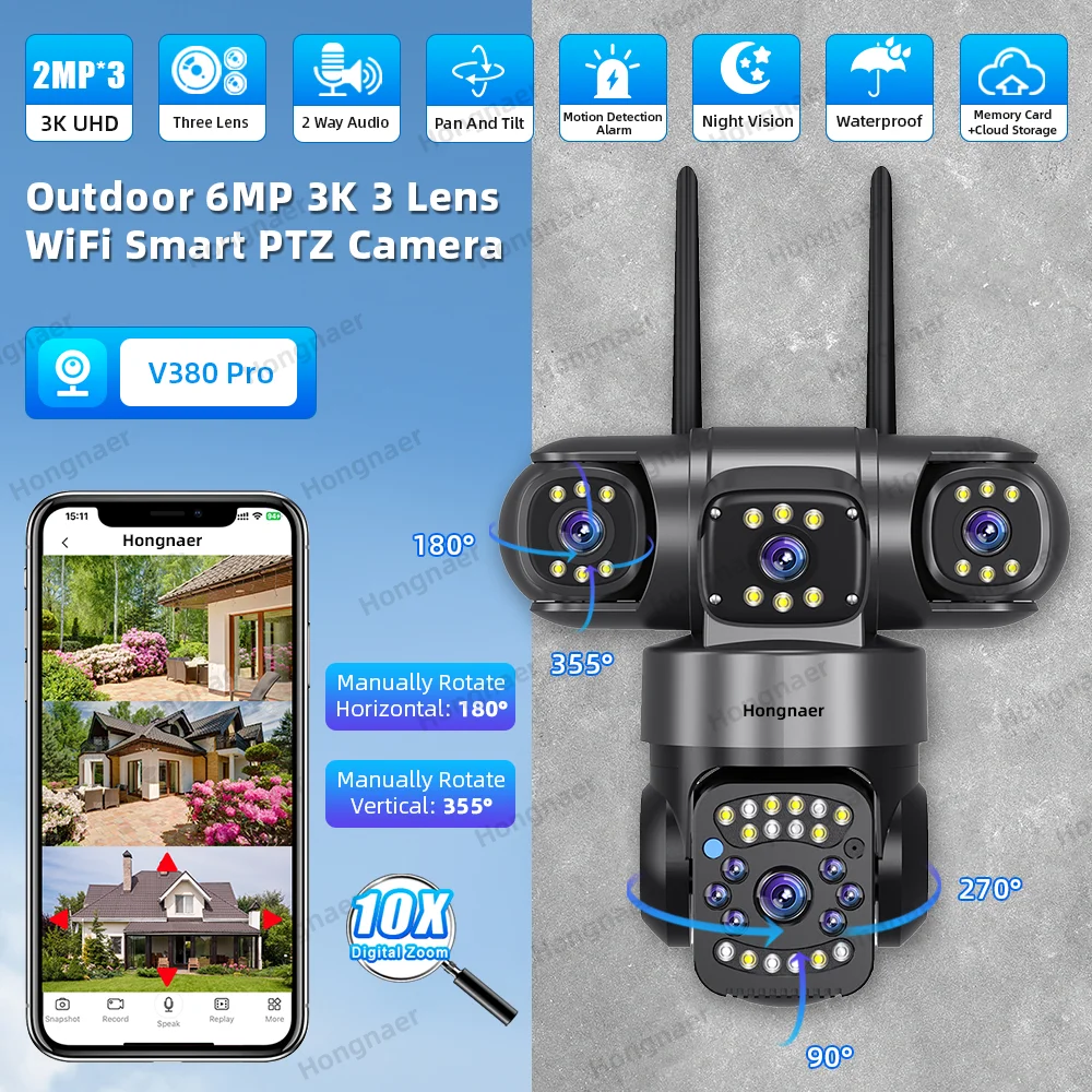 Hongnaer 6MP 3K WiFi 3 Moniteur vidéo Smart Outdoor Wireless CCTV PTZ IP Camera Three Lens V380 Pro 360 Home Security WiFi Camera