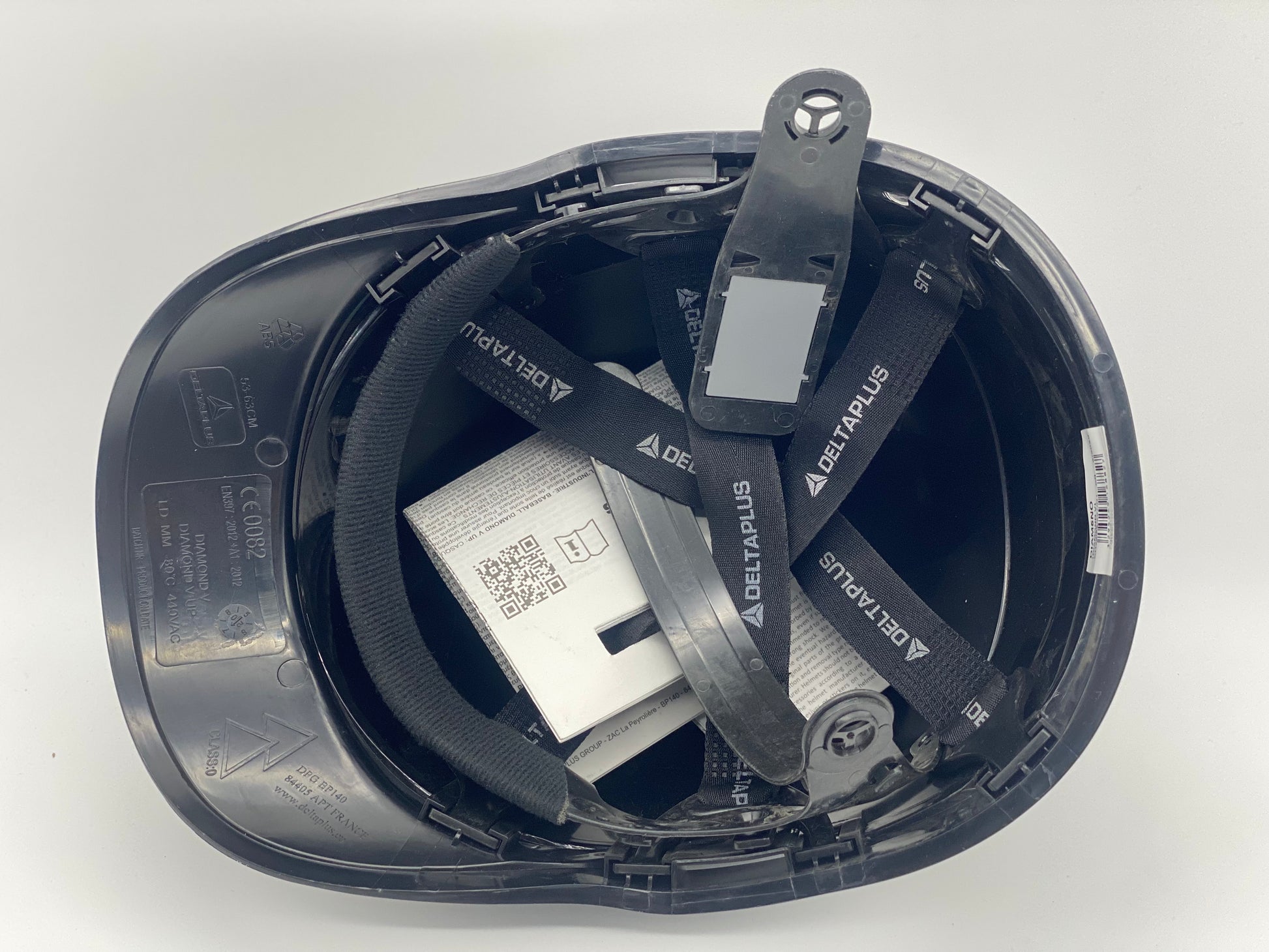 Casque de chantier ABS. En forme de casquette de baseball pour améliorer la vision verticale. Testé pour être porté dans les deux sens pour réduire les contraintes. Coiffe en tissu: 3 bandes de tissu et 8 points d'attaches. Basane éponge. Bouton d'ajustement innovant de couleur à couleur pour des tours de têtes de 53cm à 63cm. Deux positions possibles pour le bandeau (haute/basse) pour plus de confort. Isolation électrique. Bandes réfléchissantes pour une haute visibilité de jour comme de nuit. Adapté à la construction, au génie civil, à l'industrie générale, à l'automobile, à l'industrie alimentaire et à l'aviation. Composition: polyuréthane.