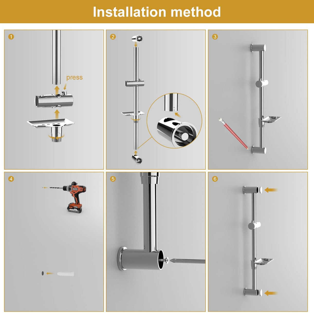 Ensemble Barre de Douche 55 CM, Douchette, Flexible, Porte-Savon, Chrome, Argent