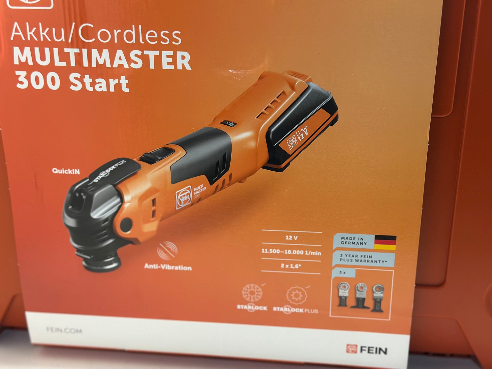 Outil multifonction 12V Fein MultiMaster AMM 300 Plus Start + 2 Batteries Li-Ion 3Ah + Chargeur + 3 Lames + Mallette