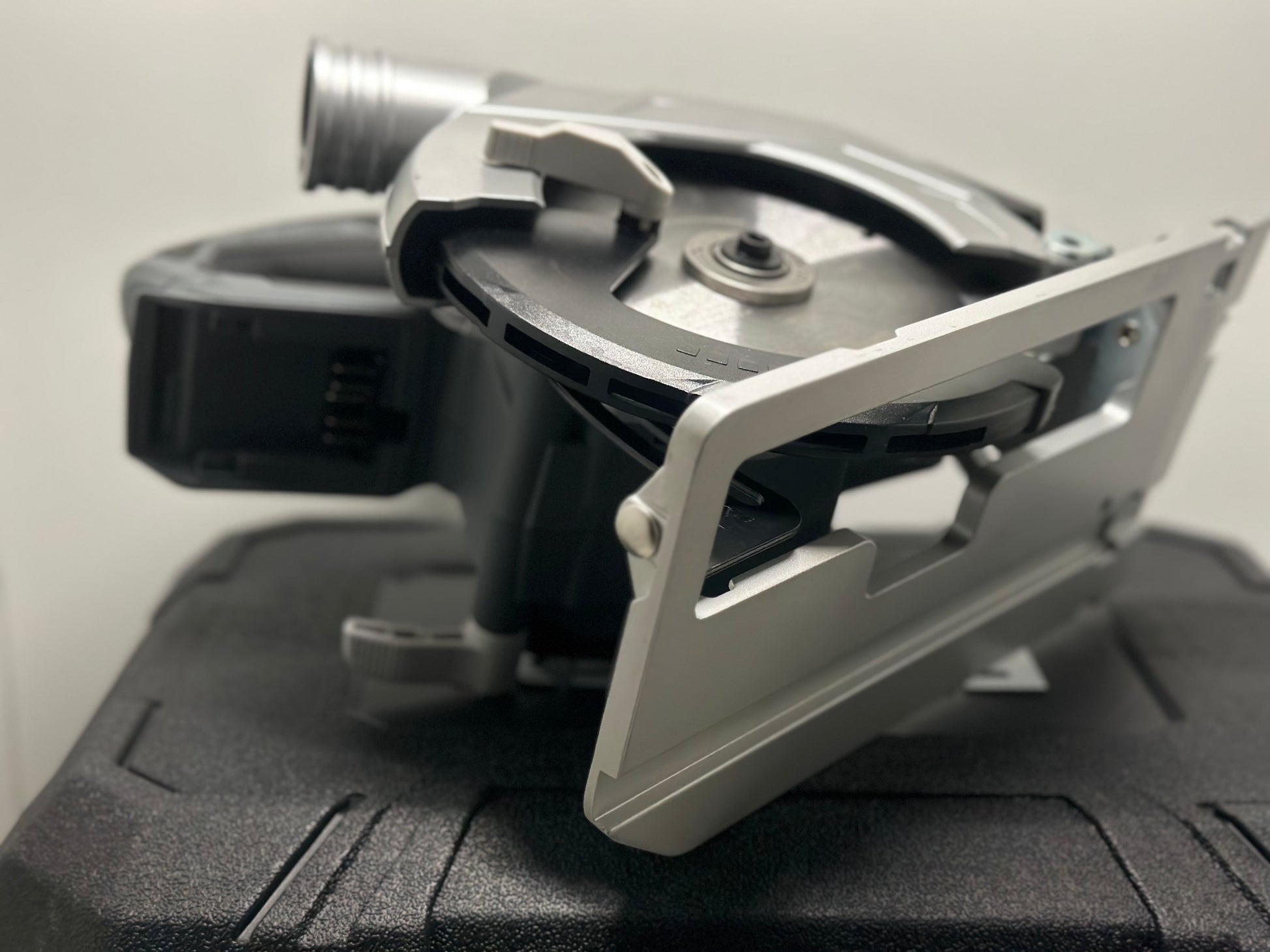 - Laser à ligne ouverture pour éjection des copeaux. Vitesse à vide : 4200 tr/min max. Angle de coupe : 90-45°. Profondeur de coupe à 90° : jusqu'à 51 mm