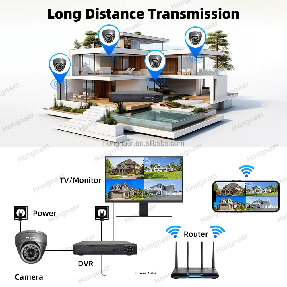 Hongnaer 8MP Outdoor Dome AHD DVR 8 Channel Home Digital Video Recorder 4K Security CCTV Camera Kit System Surveillance System