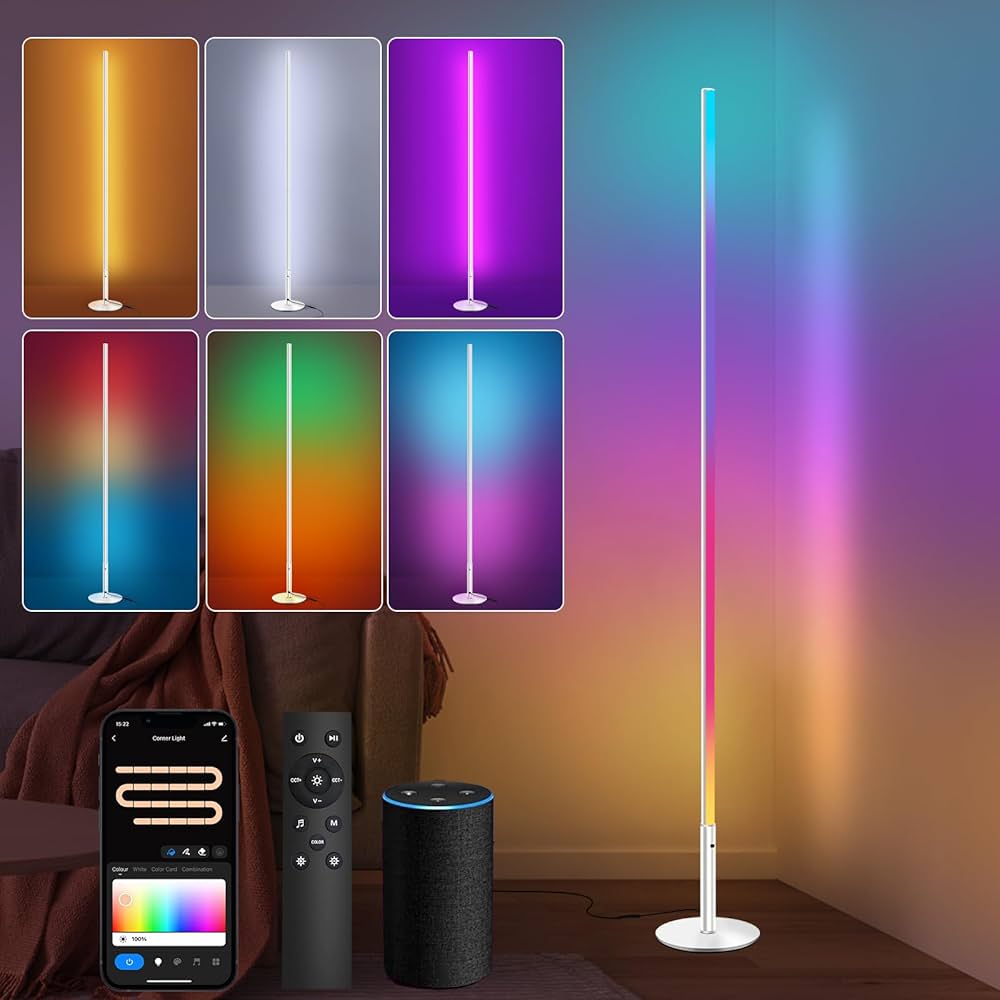 Lampadaire sur Pied Salon, RGBCW LED Compatible avec Alexa / Google Home / WiFi APP et Télécommande, D'angle Lampe Moderne Chambre Musique Sync 2700K-6500K 16 Millions Couleurs