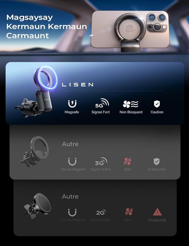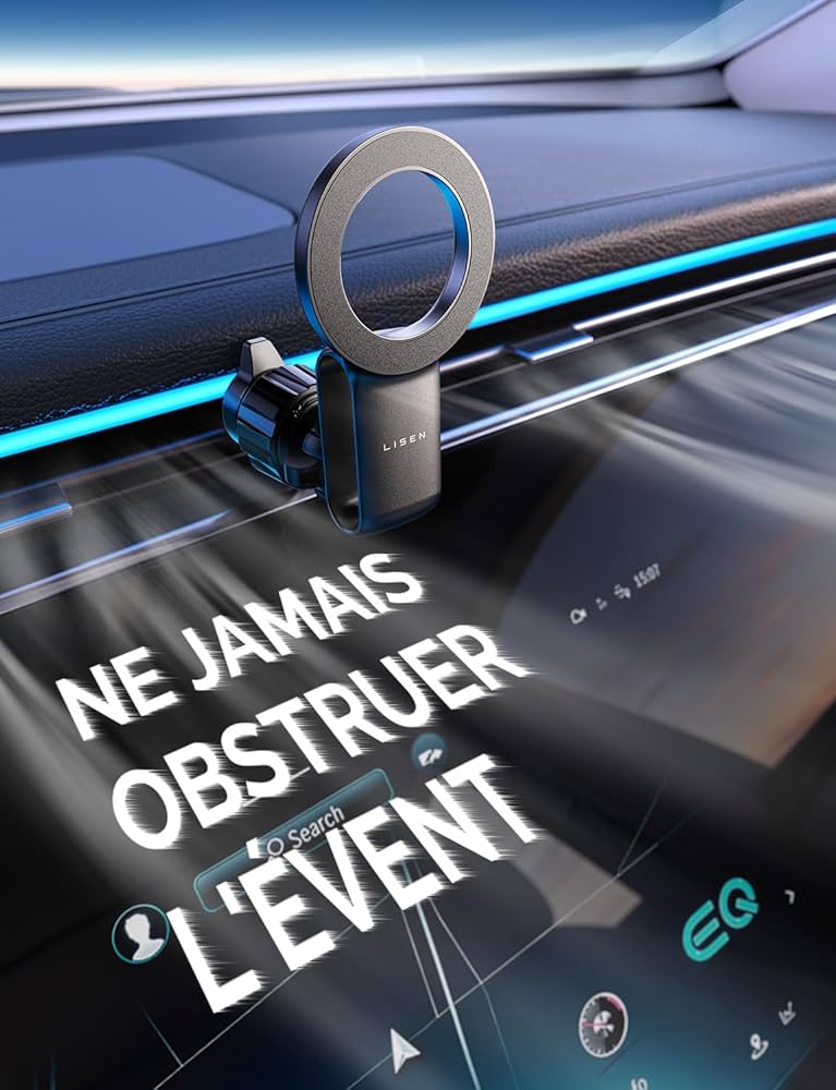 LISEN Support Téléphone Voiture Magsafe, Clip Améliorer 2024 [30 Super Aimants Puissants] [Case Friendly] Support Magnetique Porte Telephone Voiture Aimanté pour Tous Les pour iPhone 15 14 13 Pro Max
