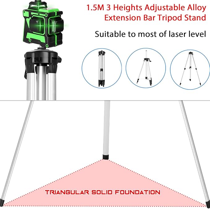 - 3° Mise à Niveau Automatique : Niveau laser autonivelant,Équipé d'une fonction de calibrage par auto-test, mise à niveau automatique à 3°, mais si l'angle est supérieur à 3°, la lumière laser continuera à clignoter pour vous rappeler de les remettre sur un sol plat.