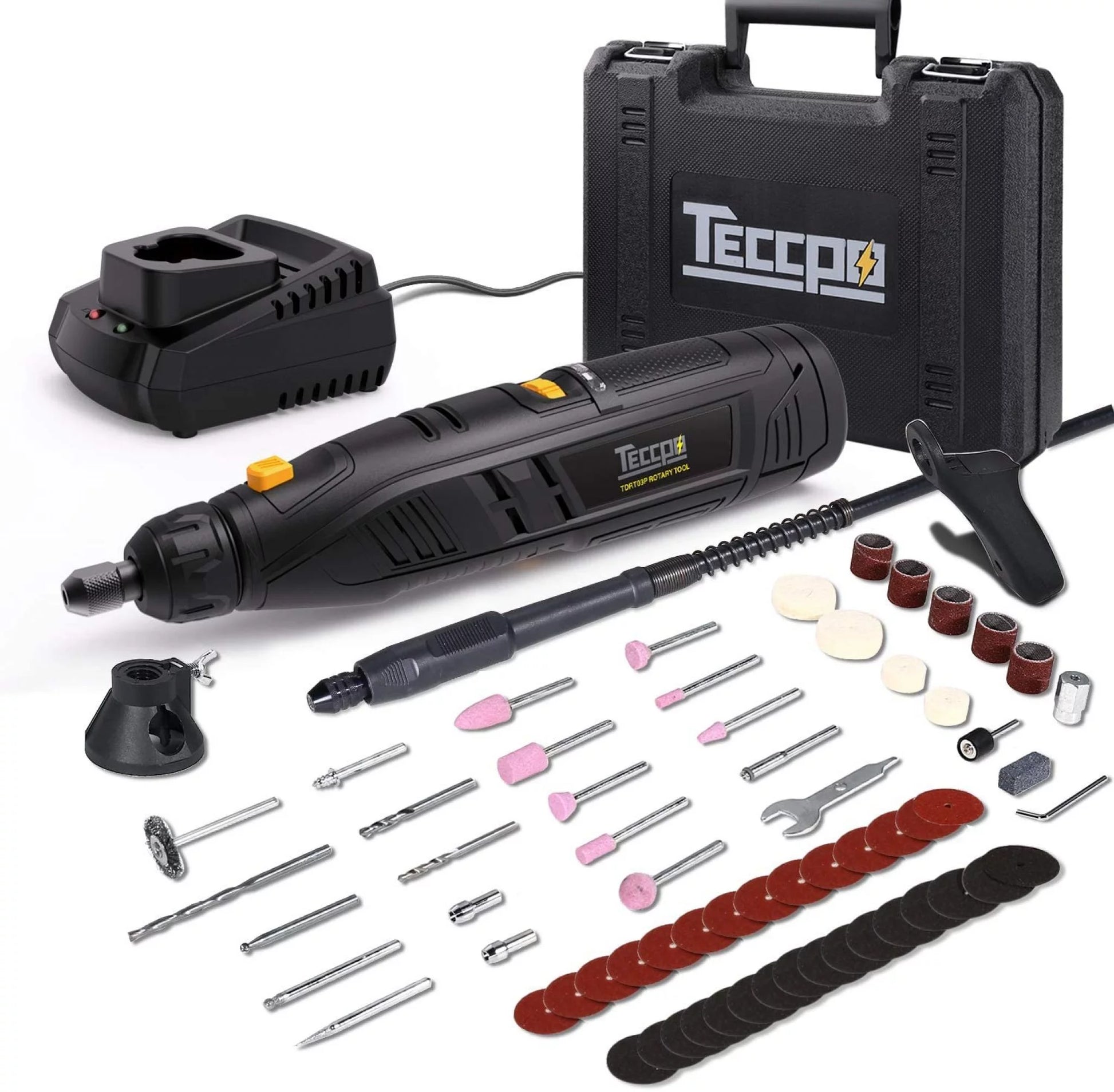 Outil Rotatif, TECCPO Outil Rotatif Multifonction Sans-fil 12V avec chargeur, 5000-28000RPM Vitesses Réglable, 4 Adaptations 80 Accessoires pour Découper, Poncer, Percer, Nettoyer