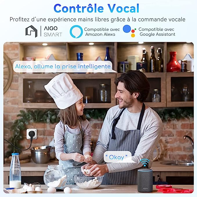 La prises connectées et intelligentes Aigostar peut être combinée avec l'assistant vocal Amazon Alexa ou le système vocal Google Assistant pour contrôler automatiquement l'ouverture et la fermeture de la prise avec un seul bouton. Réalisez le mode de vie intelligent à la maison.