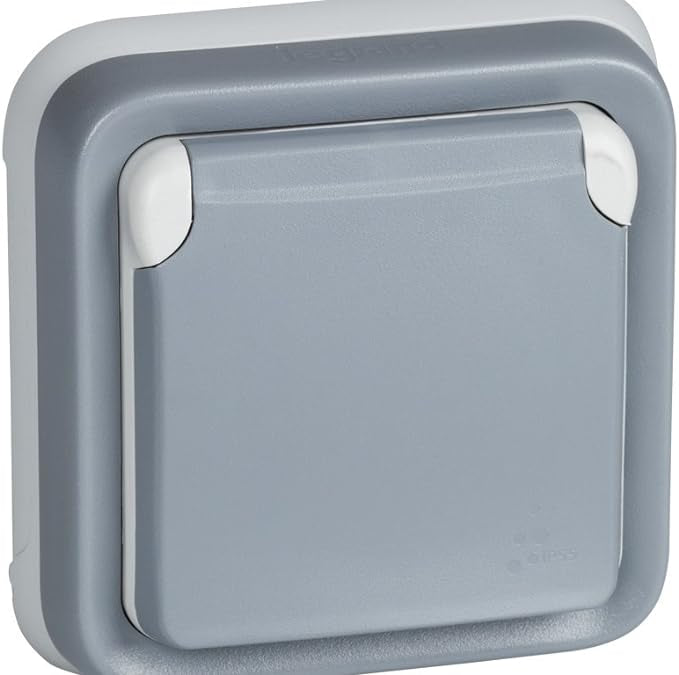 Prise murale, prise étanche encastrée de la gamme Plexo, prise externe, étanche (IP55), Gris Legrand