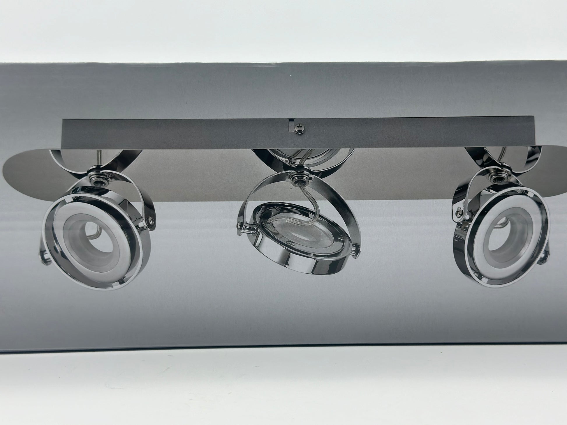 La barre de 3 spots XENA avec finition chromée est conçue pour une utilisation en intérieur et peut être utilisée dans une variété d’espaces domestiques, y compris les salons, les chambres, les cuisines, les couloirs, etc. Ses 3 spots peuvent être orientés selon vos besoins, grâce à leurs axes de rotation.