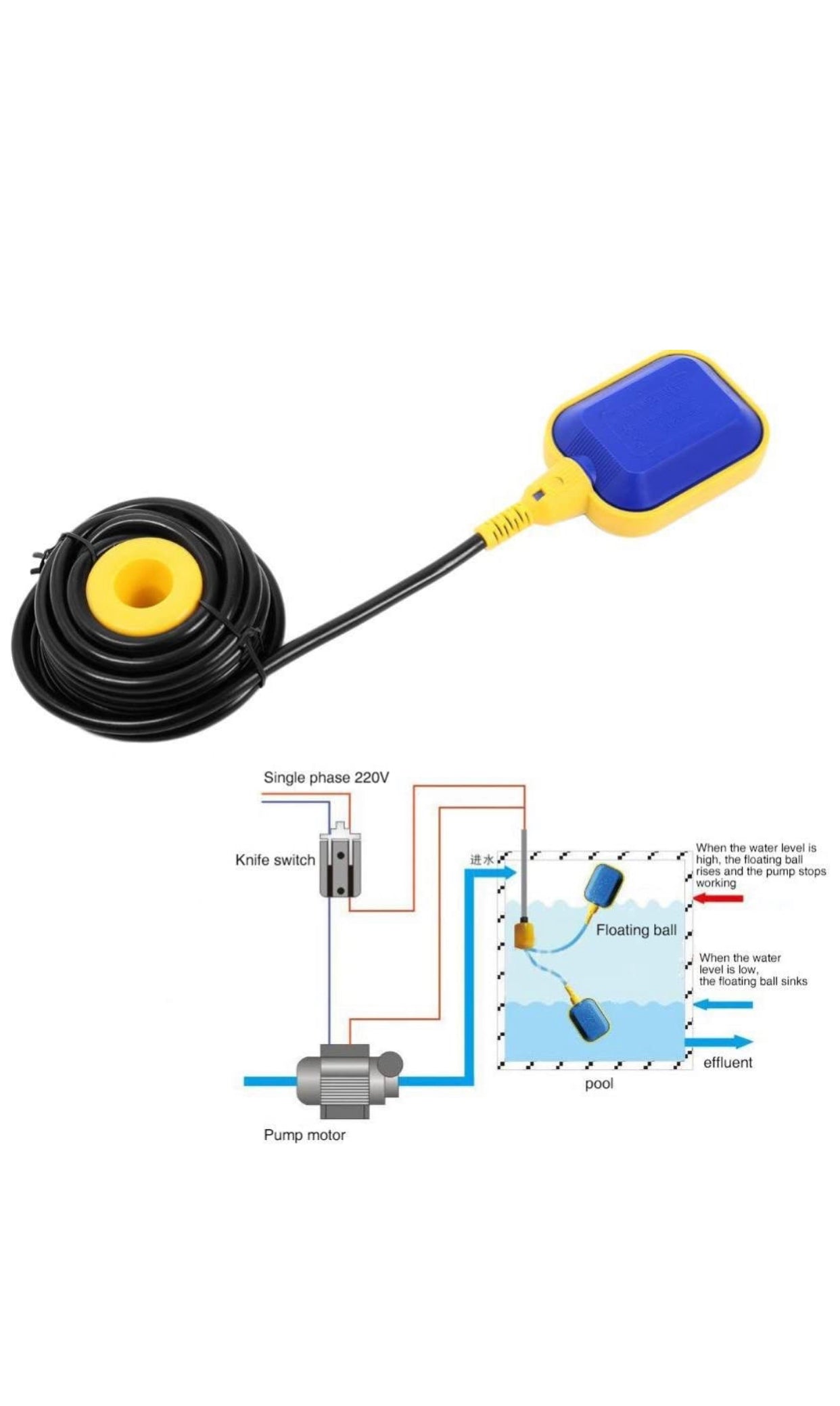 - Utiliser la Plage Ce produit est applicable au fonctionnement de la pompe de contrôle, au niveau du liquide et peut également être installé sur la pompe submersible pour contrôler et protéger le moteur.
