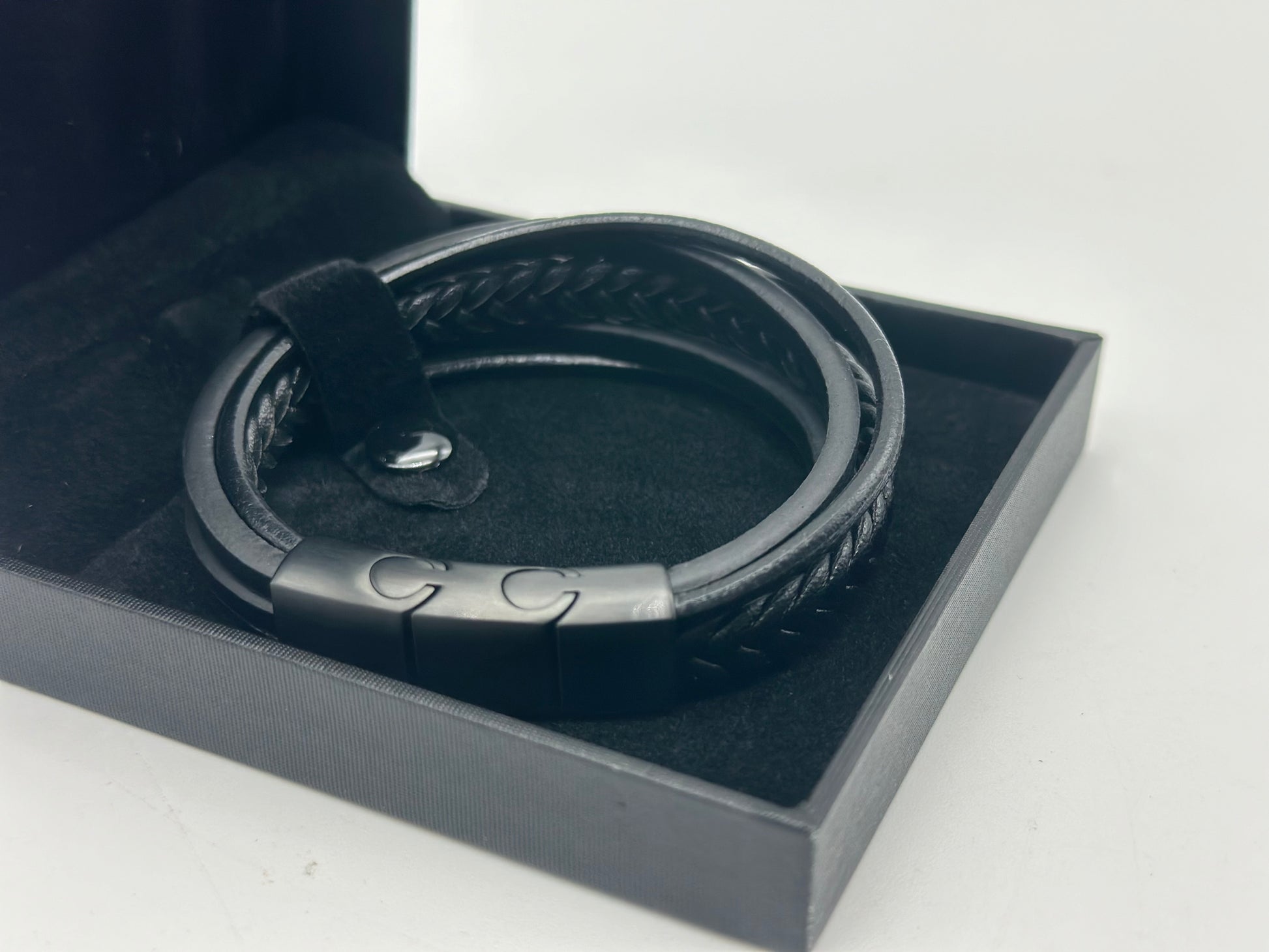 MBracelet Homme en Cuir Véritable Noir et Marron - Fermoir Magnétique en Acier Inoxydable - Bracelet en Cuir Tressé Multiple - Bijoux Homme avec Boîte de Luxe - Idée Cadeau pour Homme