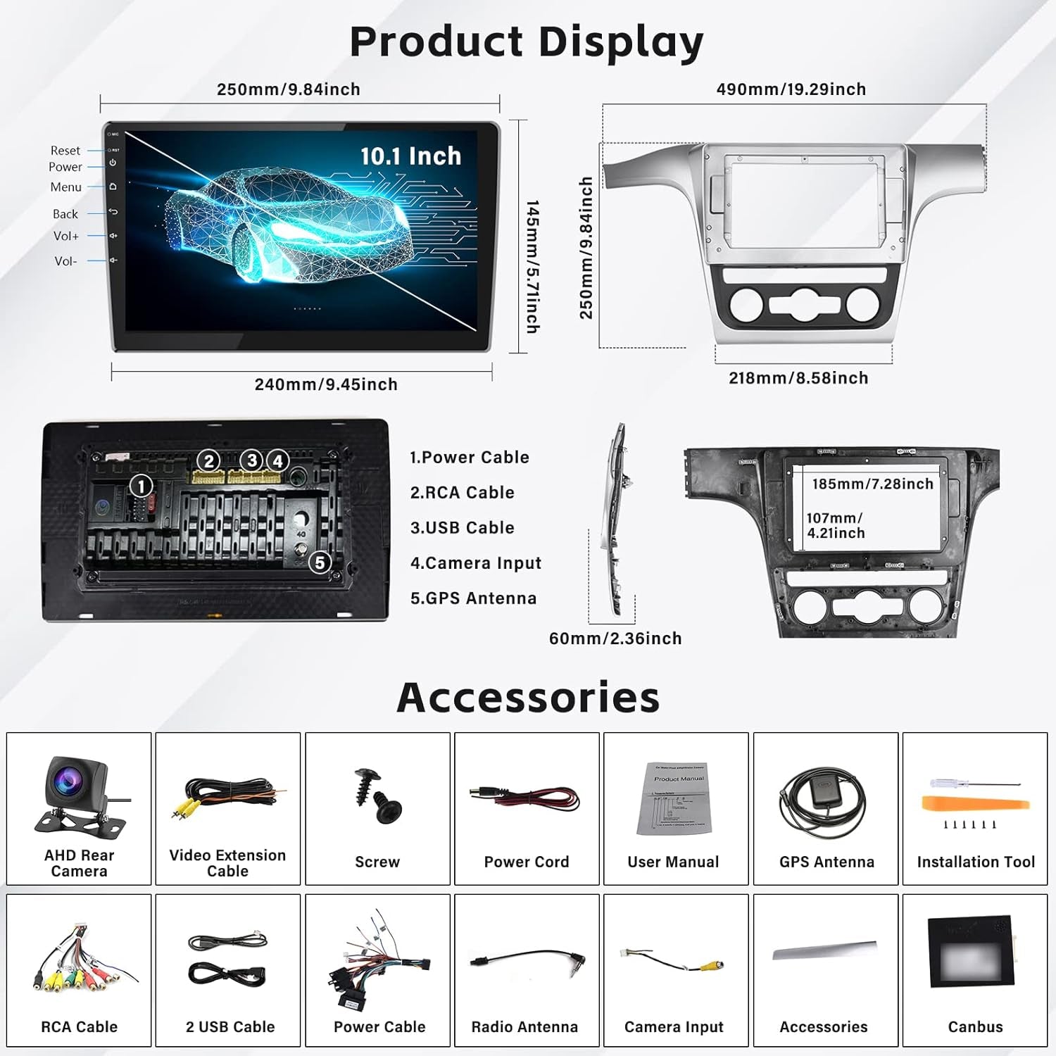 - 🚗 【Fonctions super pratiques】 ①Réversion d'assistance: vous pouvez connecter la caméra d'inversion arrière (incluse), la caméra arrière peut vous offrir l'aide. ②MIRROR LIEN: Il convient aux téléphones mobiles Android et iOS. Contrôles de roues de sténération: vous pouvez passer des appels, ajuster le volume ou changer de chansons plus en toute sécurité