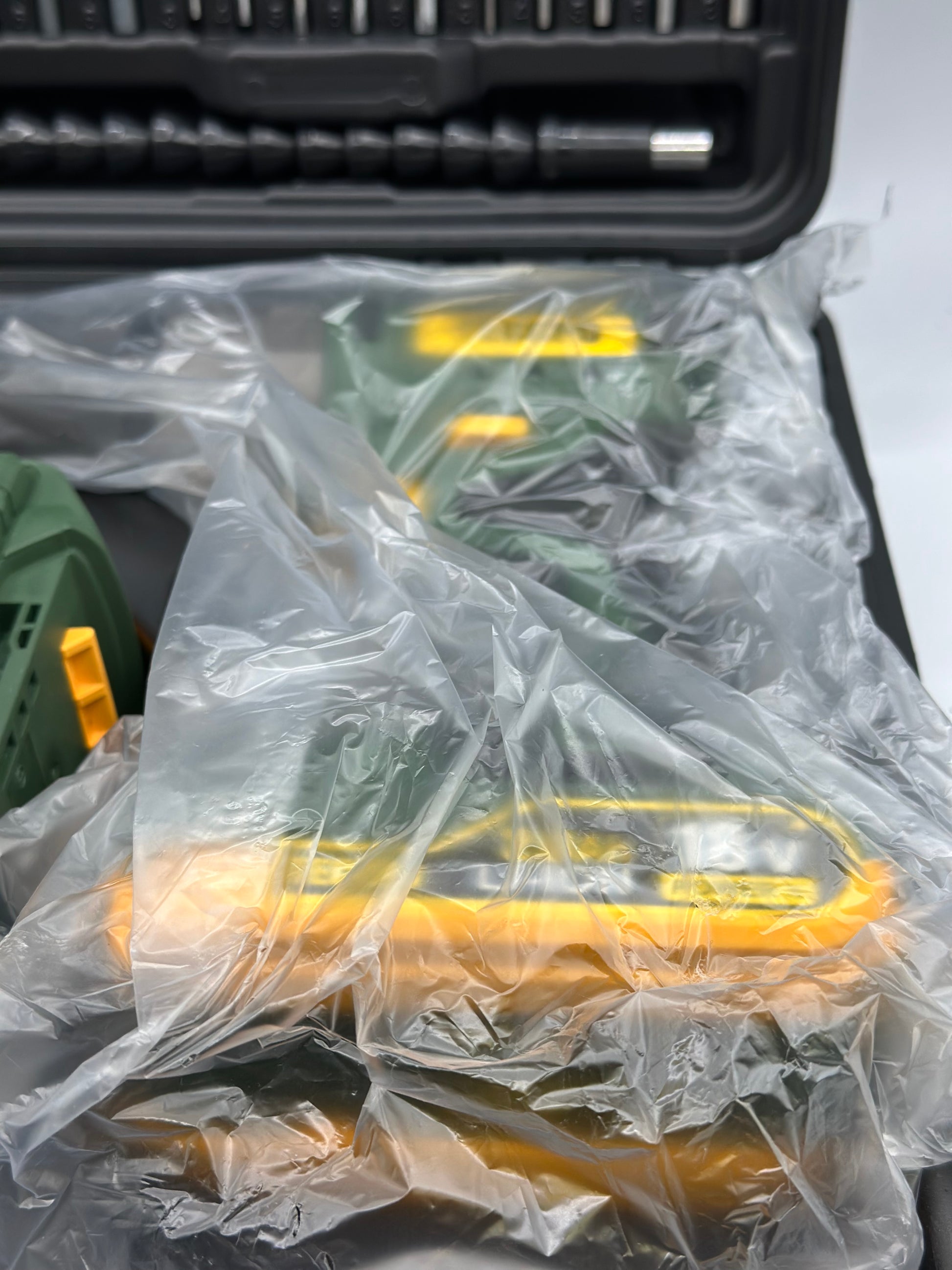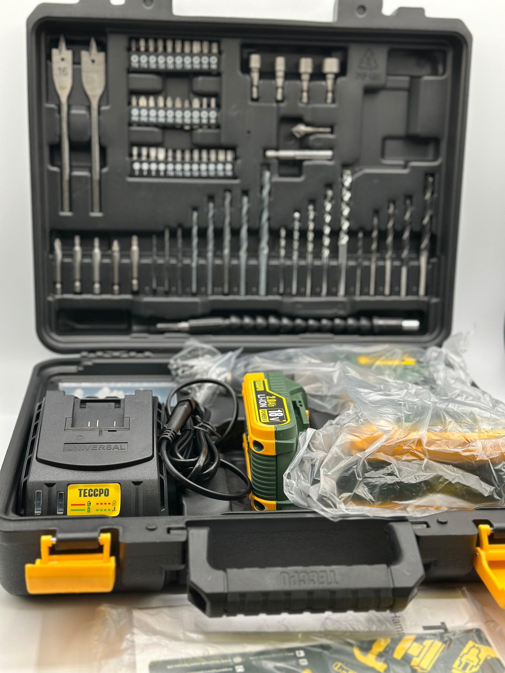 | Composants inclus | Perceuse-visseuse à percussion sans fil BHD700B √ Couple maximal de 45 Nm √ Mandrin métallique autobloquant √ Boîte à outils professionnelle ➤ 1 perceuse 18 V ➤2 2 batteries 2000 mAh ➤ 1 chargeur rapide 2 A ➤105 accessoires gratuits: ▲ 1 support de ceinture, 1 arbre flexible, 1 adaptateur d'embout. 3 forets à pierre : 3 - 4-5-6-8 mm ▲ 5 x forets à bois : 3-4-5-6-8 mm ▲ 8 x forets métalliques : 2-2.5-3-4-5-5.5-6-8 mm ▲ 4 x embouts de clé à douille : 6-8-10-12 mm ▲ 5 x tournevis : PH2/PZ2/PZ2/PZ2/T10/T15/T15/T2 0 ▲ 2 x Mèches à bois : 16/20 x 150 mm ▲ 32 x jeux d'embouts différents ▲ 15 x vis ▲ 15 x chevilles ▲ 10 x aiguille à déchirer |