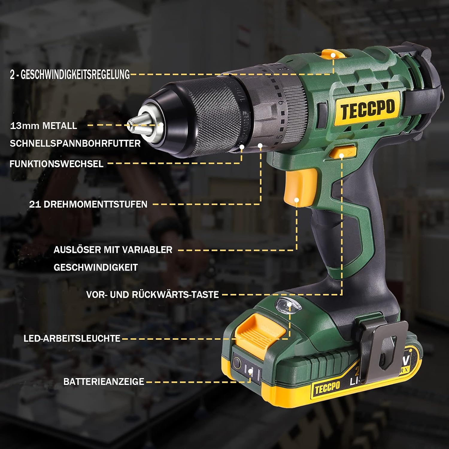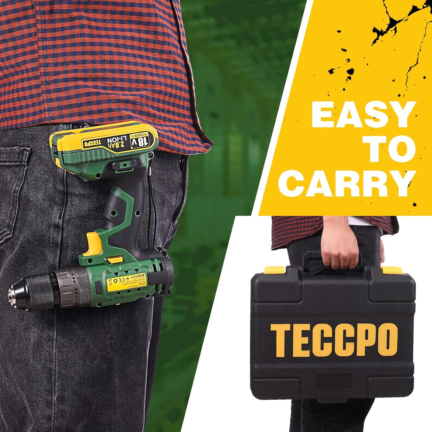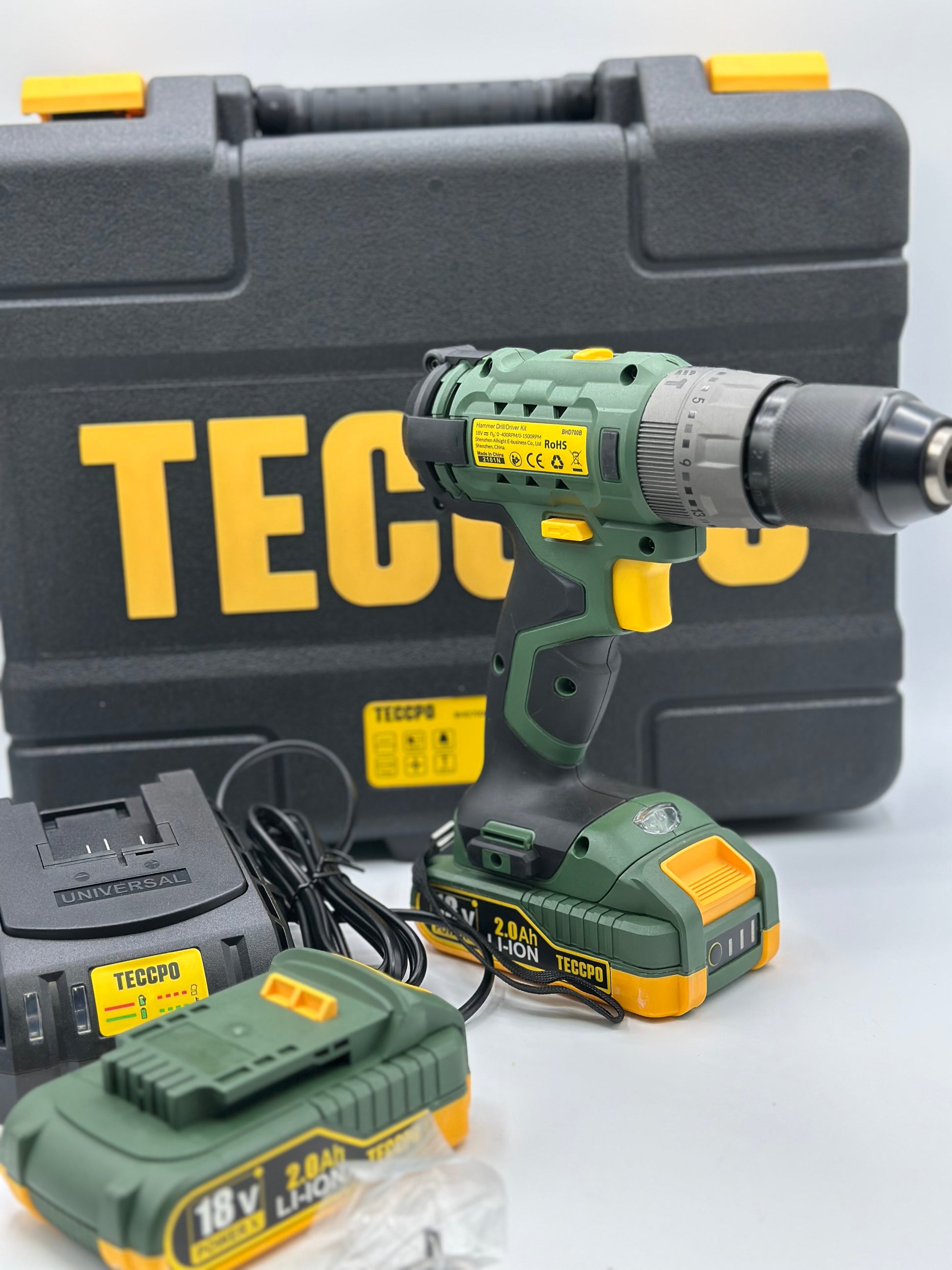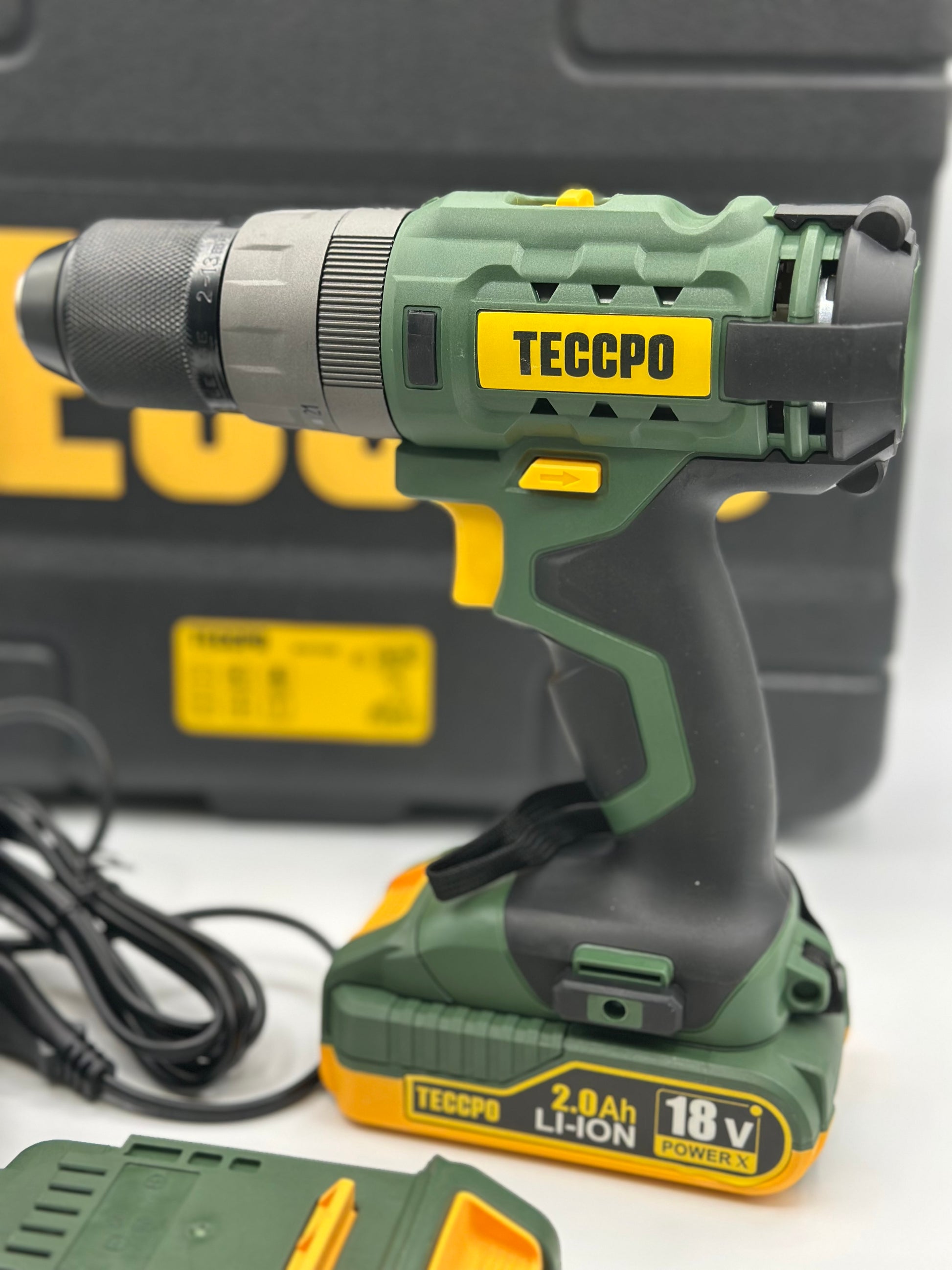 Visseuse sans fil TECCPO 18 V, 45 Nm, 2 batteries 2000 mAh et 105 accessoires, chargeur rapide, 21 + 3 niveaux de couple, 2 vitesses, mallette à outils portable - BHD700B