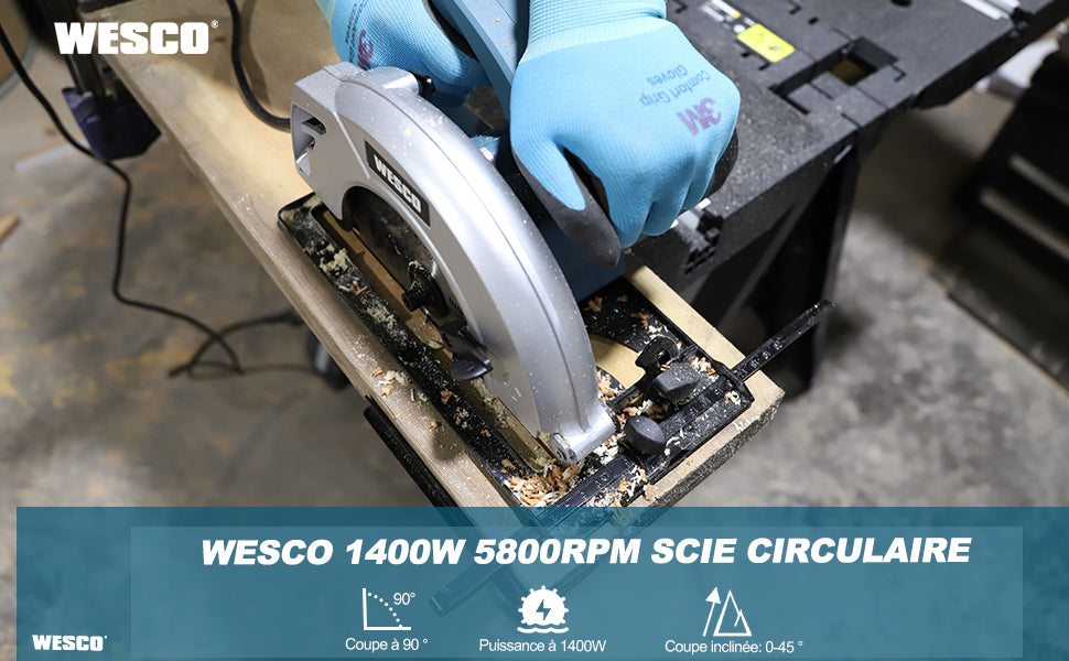 | Nom du produit | Scie Circulaire 1400W, Lames 24T/40T (185mm), WESCO WS3441.2 |
