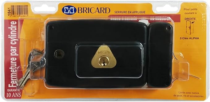 Bricard 1841 Serrure en applique horizontale fouillot 2 entrées Cylindre 5 Goupilles droite, Noir