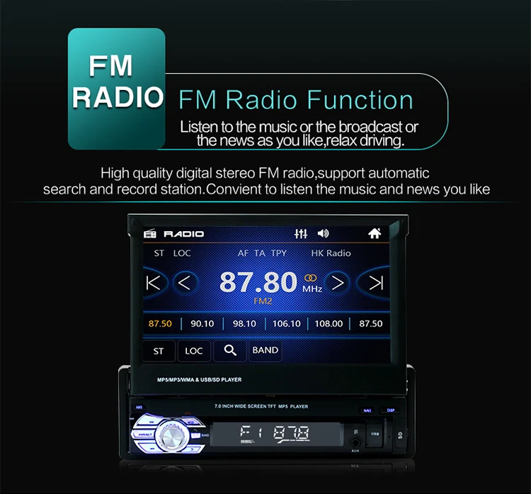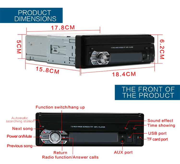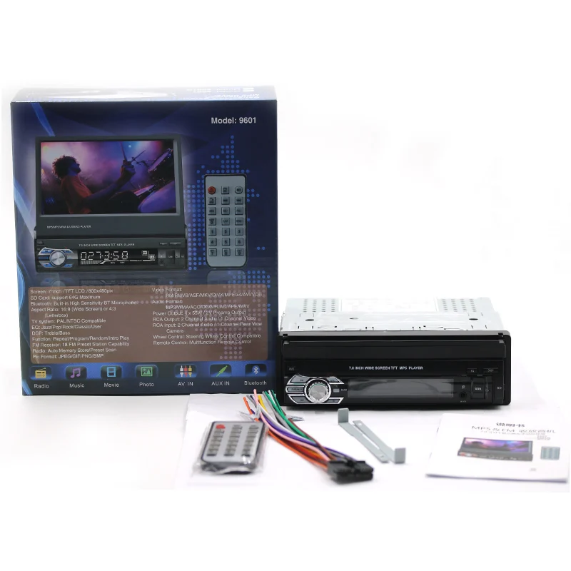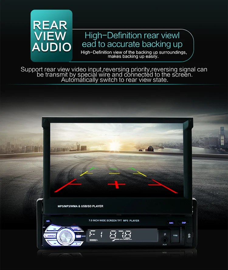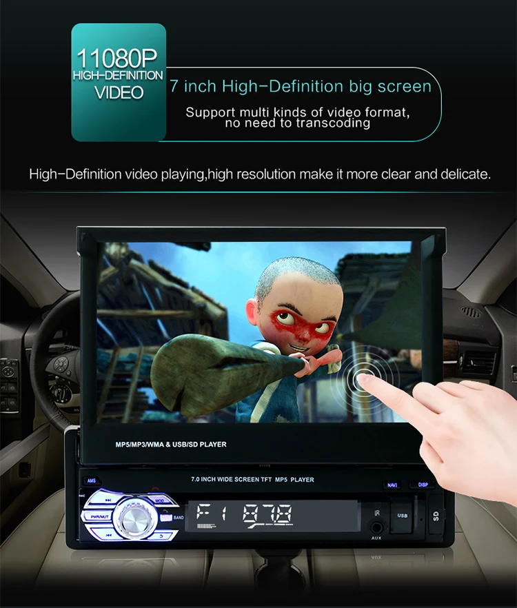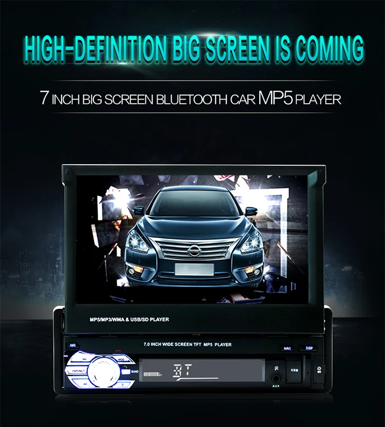 Single Din Car Radio MP5 Lecteur Rétractable 7" Écran Tactile Audio BT USB TF FM AUX Multimédia Vidéo Lecteur DVD Voiture Stéréo