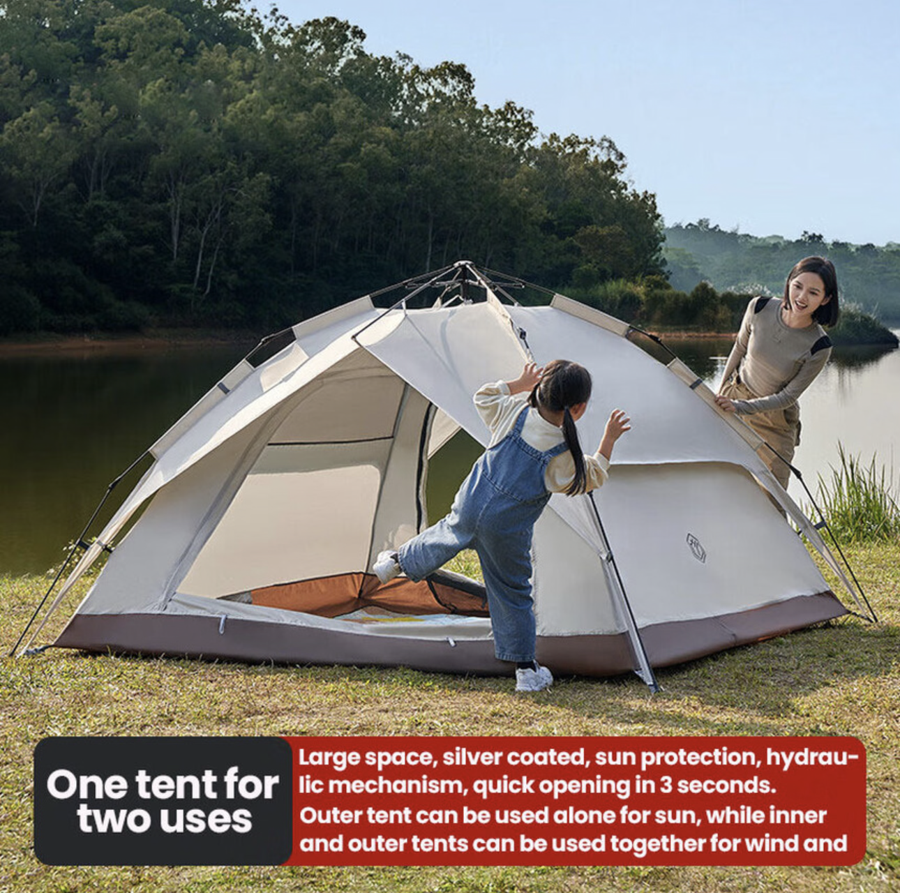 5. Peut accueillir 3 à 4 personnes : suffisamment spacieuse pour accueillir 3 à 4 personnes, elle est parfaite pour les voyages en camping en famille ou en petit groupe.