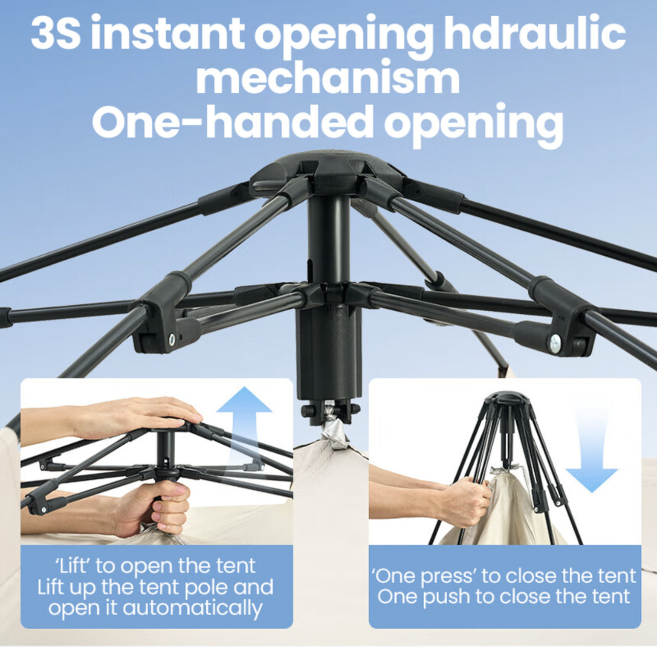 2. Ouverture automatique : équipée d'une fonction d'ouverture automatique, elle s'ouvre et se ferme facilement d'une simple pression, ce qui la rend pratique et rapide à installer.
