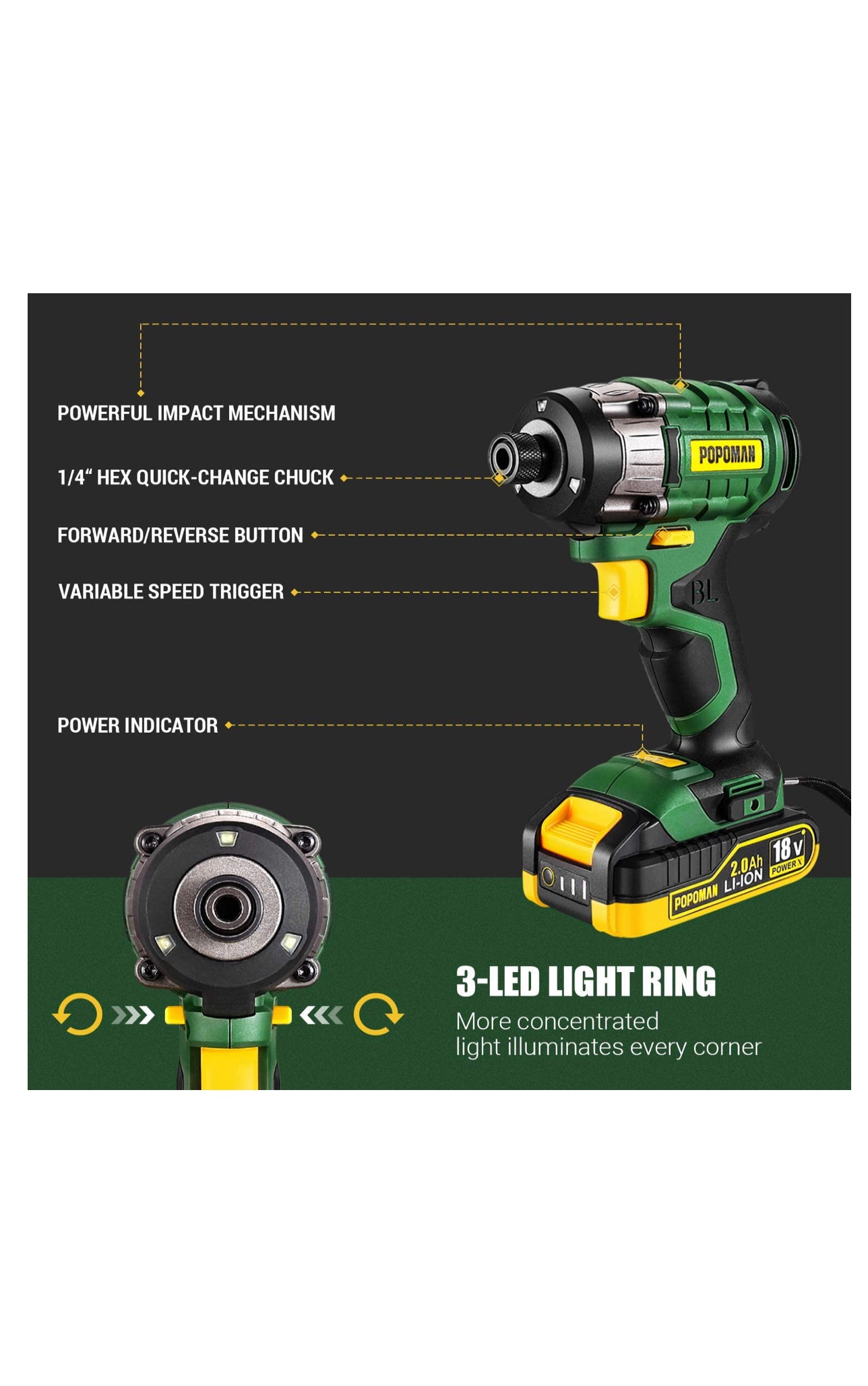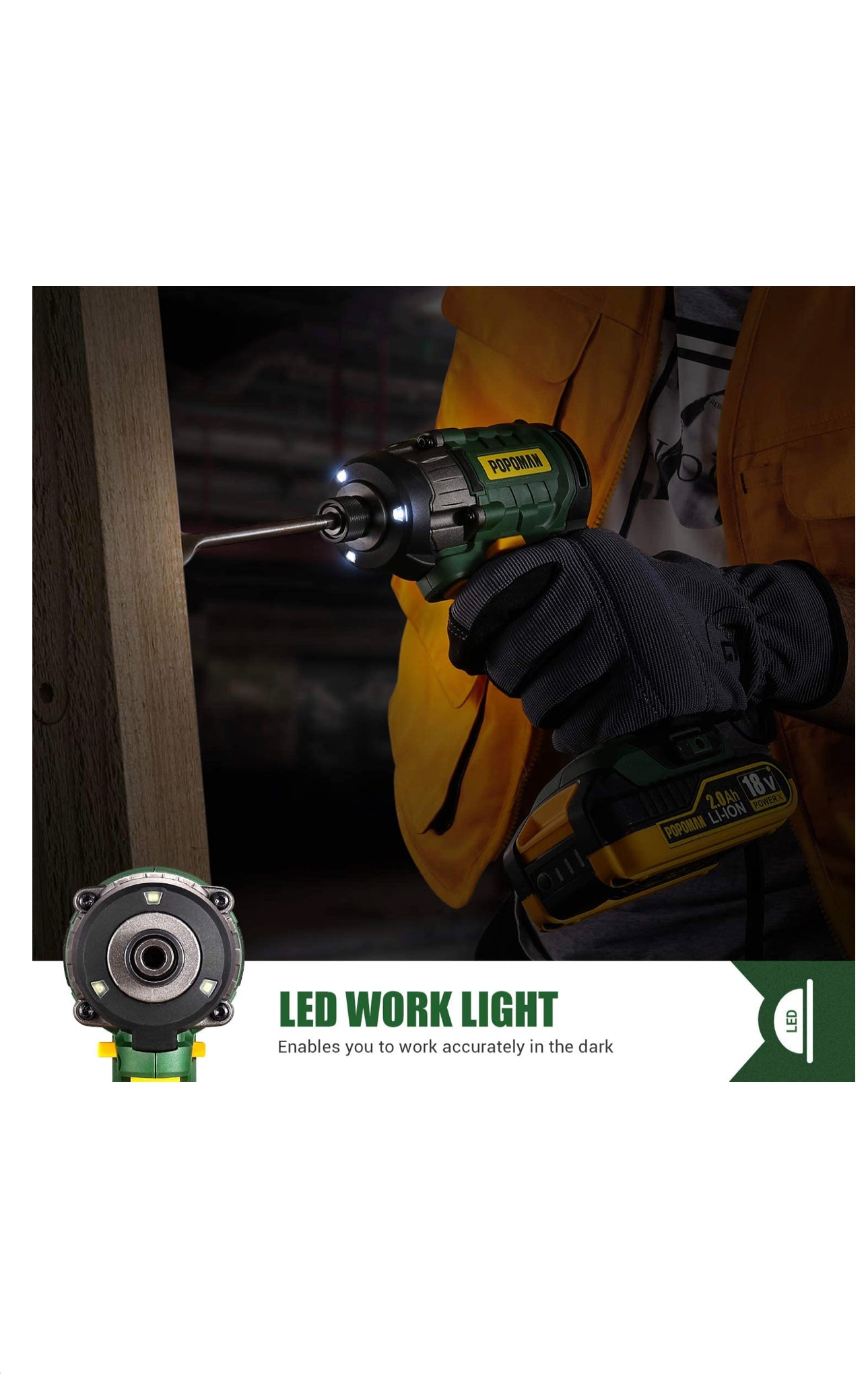 Le boîtier avant en métal est plus robuste et permet un meilleur équilibre de la machine. 3 Lampe LED pour une visibilité améliorée. La lampe LED à 3 anneaux fournit un éclairage optimal dans la zone de travail, vous permet de travailler dans un environnement sombre. Il dispose d'un indicateur d'état de la batterie et peut vous donner de bons conseils de charge. Pour faciliter le stockage et le transport, nous avons préparé pour vous une boîte à outils. Il peut parfaitement