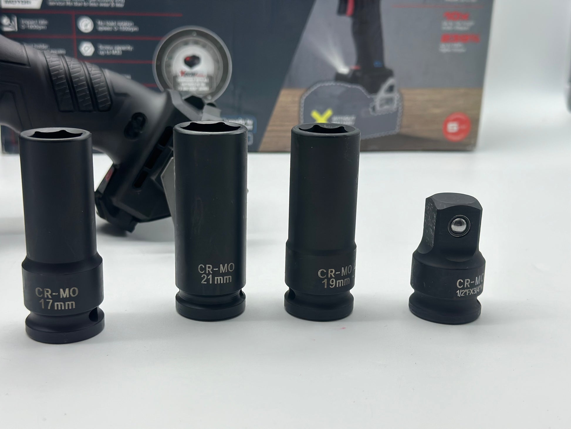 | Accessoires : | 3 douilles (emboîtement 1/2" 17 - 19 - 21 mm ; longueur 75 mm), 1 adaptateur 1/2 pouce vers 3/4 pouce |