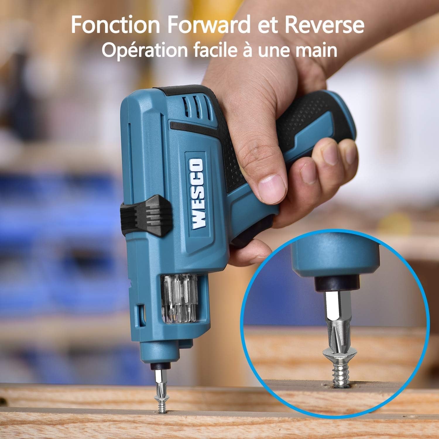 WESCO Tournevis Electrique, Visseuse sans Fil 3.6V Batterie Li-ion 1500mAh avec 6pcs Embouts de Vissage, Petit Léger, LED lumière, Changement de Embouts Pratique WS2013